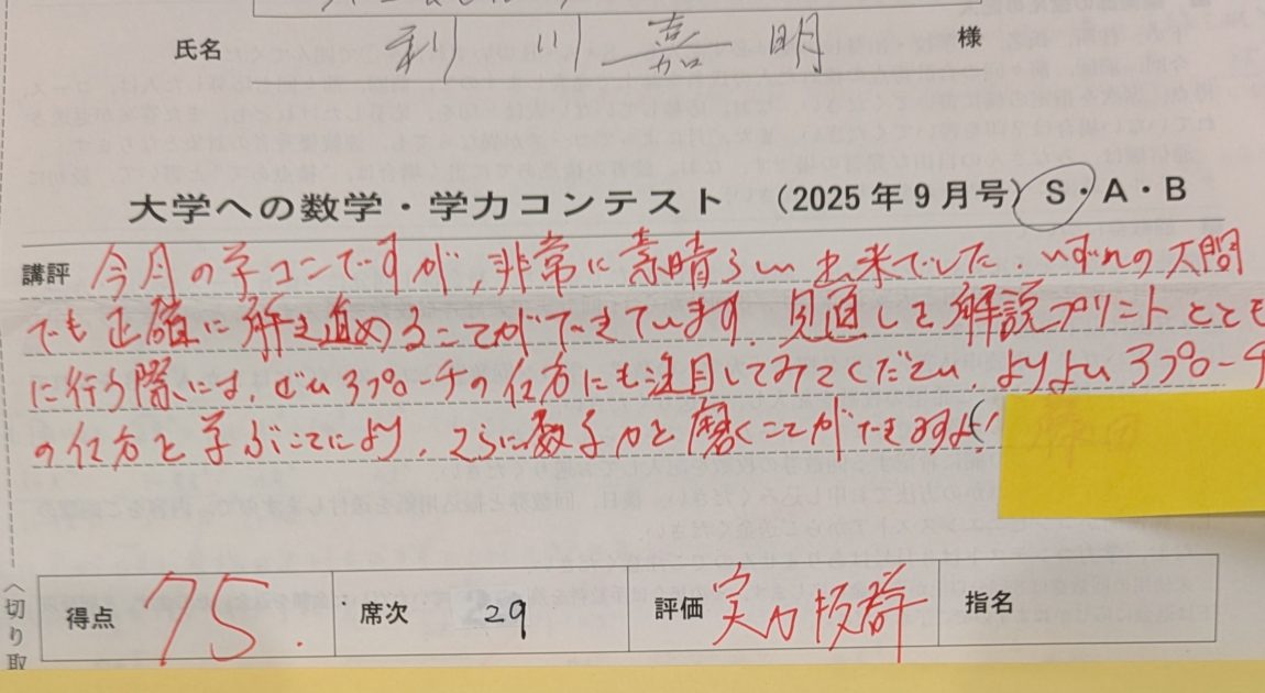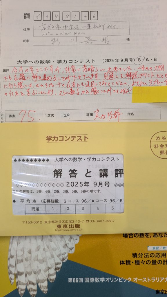 雑誌『大学への数学』の学力コンテストですが…